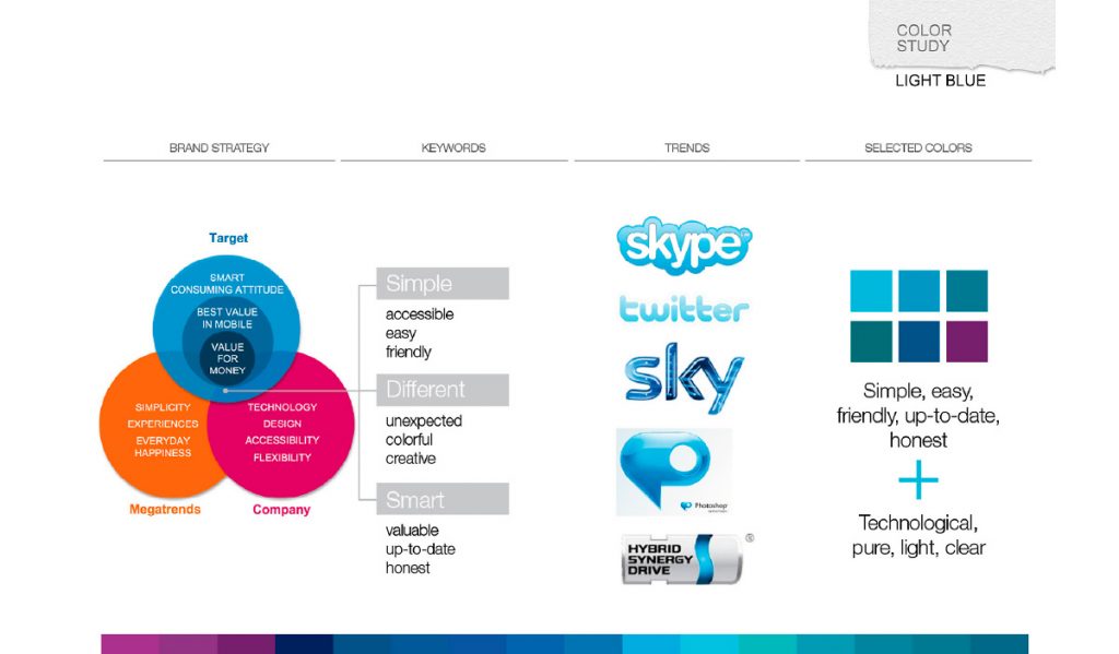 Brand perception is extended to product design. We will develop the image of a different mobile phone: colorful, with rounded lines and made of plastics that evoke a soft and tactile sensation.