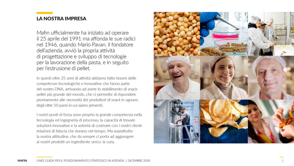 In over 25 years of history Mafin has established itself as a global presence, active in over 50 countries and the owner of the largest snack pellet plant in the world. The analysis of the company, the trends in the food sector and the main competitors lead us to accurately frame the values that guide this market.